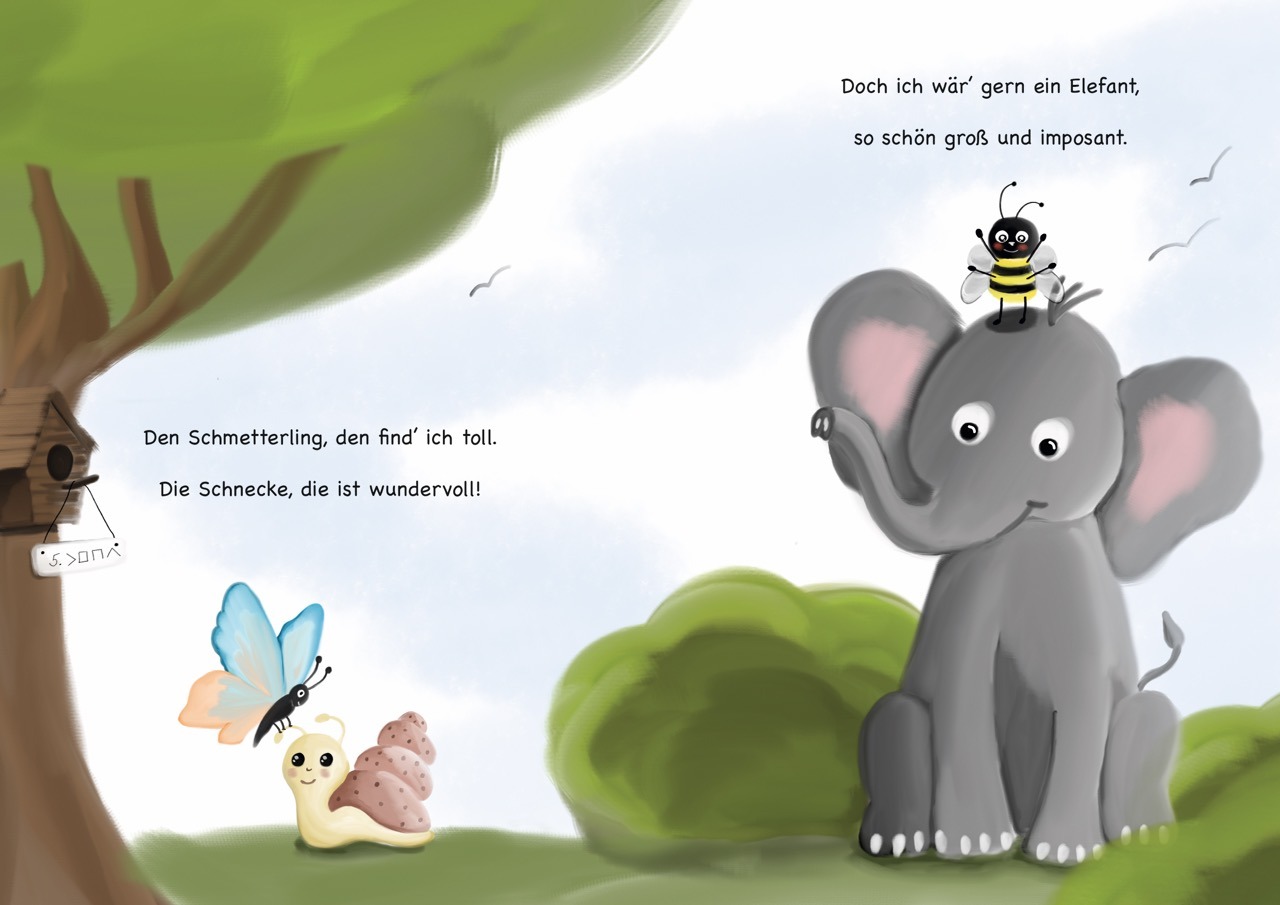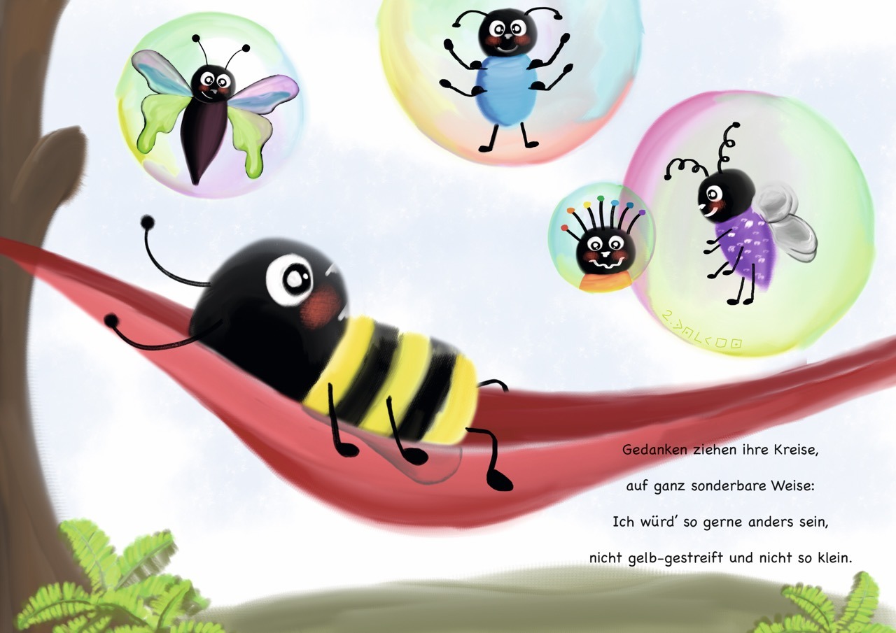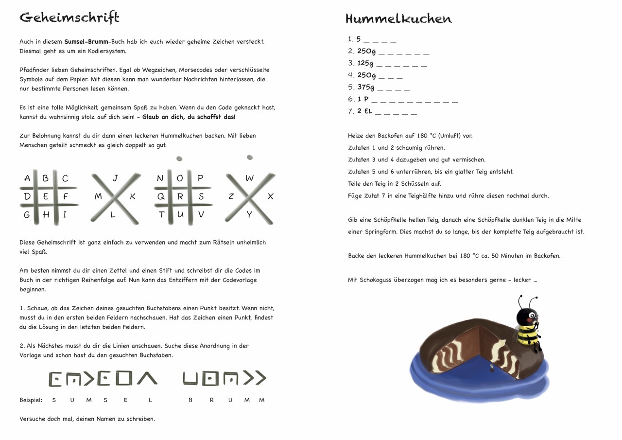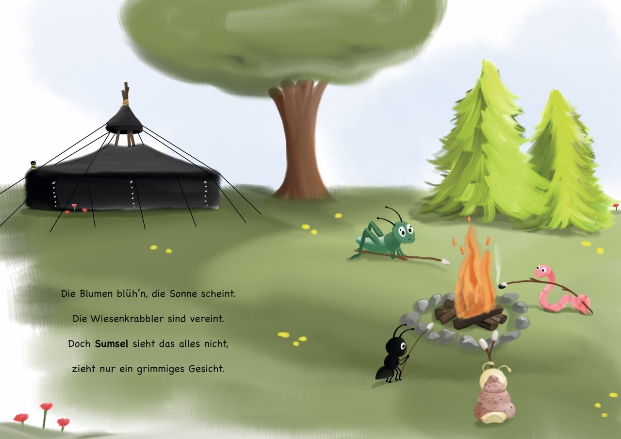„Die kleine Hummel Sumsel-Brumm ist oft schlecht gelaunt und hätte am liebsten ihre Ruhe. Sie kann sich selbst nicht so richtig leiden und wäre gerne irgendwie anders. Leider ist das gar nicht so einfach. Doch dann flüstert ihr jemand etwas Wichtiges ins Ohr…“